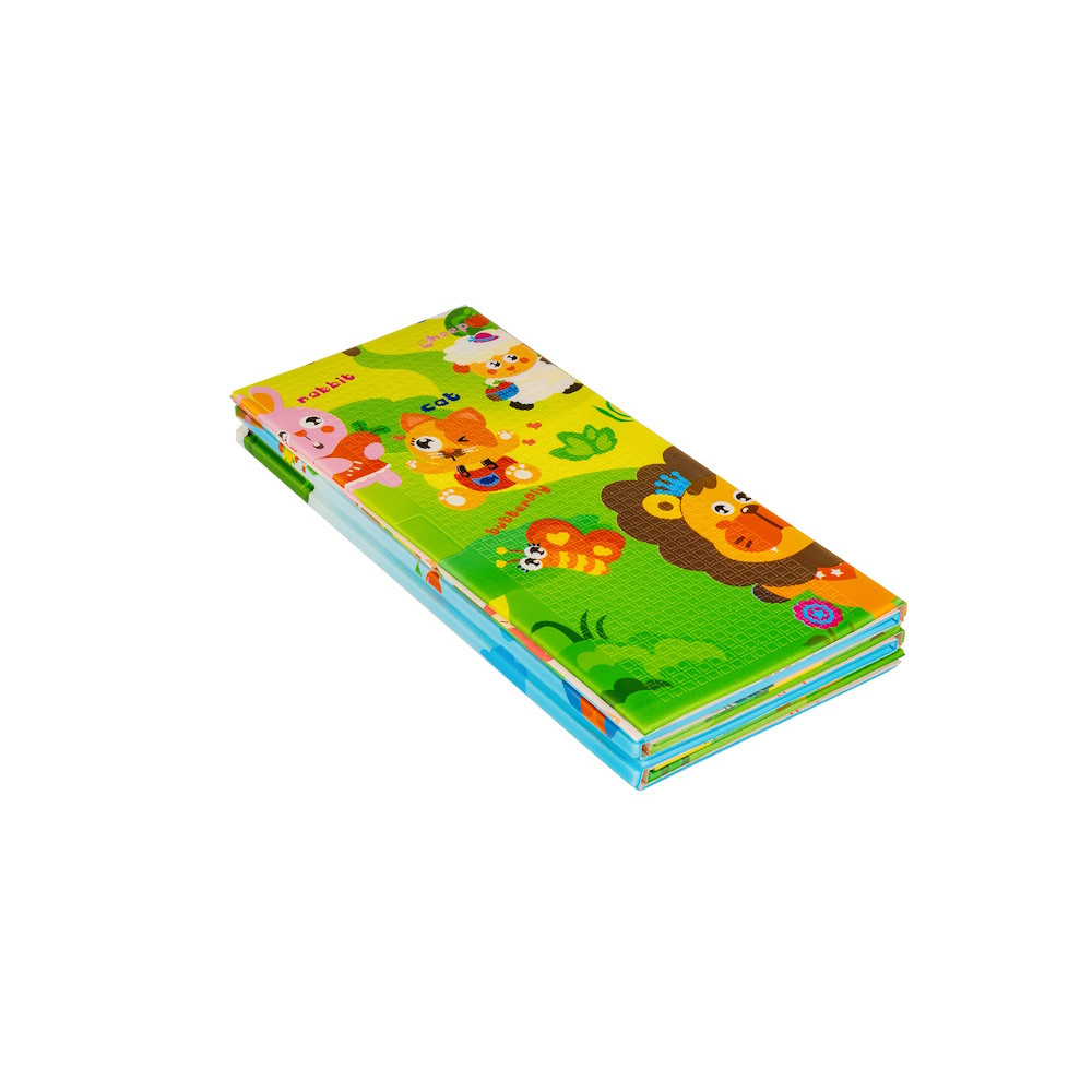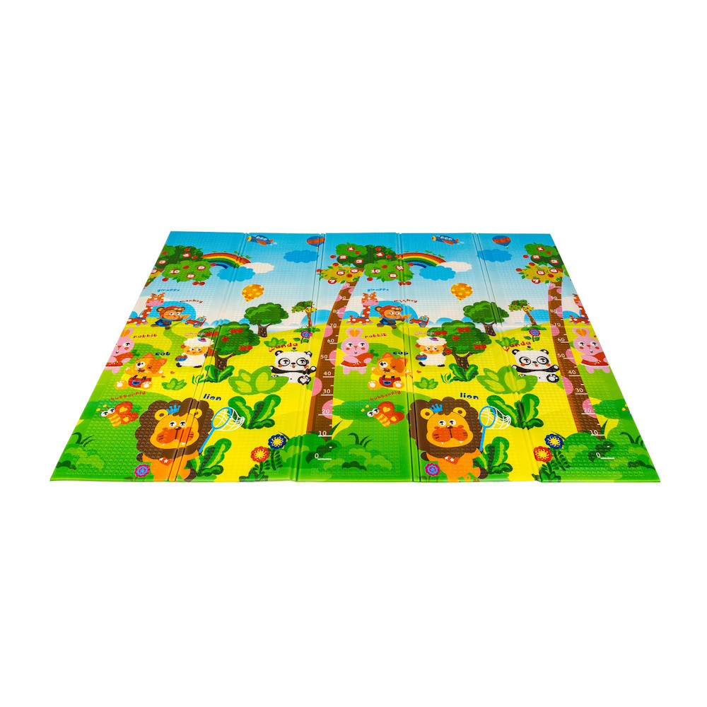 A kétoldalú összehajtható szõnyeg színes és változatos mintákat és textúrákat kínál, amelyek segítik fejleszteni a babák látását és tapintását. Tele van állatok képeivel, amelyek támogatják a legfiatalabb felhasználók intellektuális és motoros fejlõdését.A szivacs szõnyeg nagy elõnye, hogy könnyen tisztítható. Nedves ruhával könnyen áttörölhetõ. Elengedhetetlen, mert a babák mezítláb játszanak rajta és folyadékot is önthetnek rá.A szõnyeg kétoldalas szerkezeteannak egyedülálló elõnye. Mindkét oldalon innovatív minta látható. Nemcsak stimulálja a baba érzékszerveit, hanem fantáziáját is felkelti, és kreativitásra ösztönzi.A baba oktatószõnyeg tökéletes alternatívája a szõnyegeknek és plédeknek. 1 cm vastagsága miatt tökéletes párnázatot nyújt a babának, mikor elbukik.Könnyen és gyorsan összehajthatod a szõnyeget, így kompakt lesz és kis helyet foglal. Ez egyúttal nagyszerû megoldás a szülõk számára is, utazás közben. A kompakt méret lehetõvé teszi a problémamentes tárolást, a szövet táska pedig megkönnyíti a szállítást. Poliéter habszivacsból (XPE hab) és laminált fóliából készült, aminek köszönhetõen vízálló, nem szívja a nedvességet és könnyen tisztíthatóA strapabíró szivacs, amelybõl a szõnyeg készült, tökéletesen szigeteli a hõmérsékletet. Vízálló szerkezetének köszönhetõen könnyen és gyorsan eltávolíthatók az italoktól vagy ételmaradékoktól származó foltok. Termék paraméterei:-Méretek: 180 x 200 cm-Vastagság: 1 cm-Kétoldalas-Összehajtható-Könnyen tisztíthatóBiztonsági figyelmeztetések és tisztítási úmutató:- hagyományos mosogatószerrel és vízzel ajánljuk tisztítani- a tisztításhoz puha törlõkendõt vagy szivacsot használj- tisztítás után mindig hagyd jól megszáradni- a terméket óvd a mechanikai sérülésektõl- a terméket ne hagyd sokáig olyan helyen, ahol közvetlen napfénynek van kitéve, ne helyezd fûtõberendezés melléÚjszülött kortól használható.