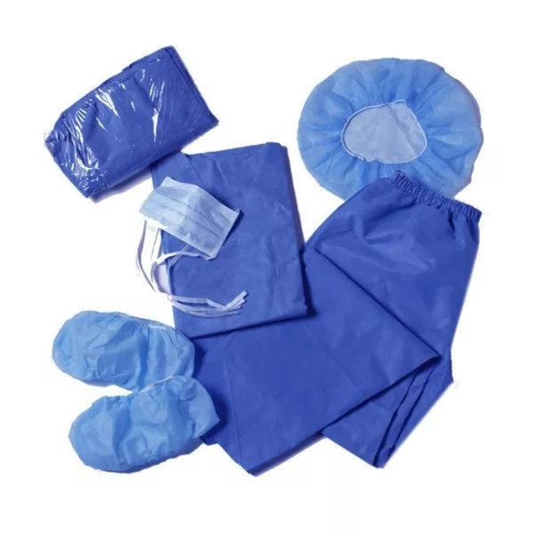 A szett 5 részes: nadrág, felső, szájmaszk, hajvédő, cipővédő.