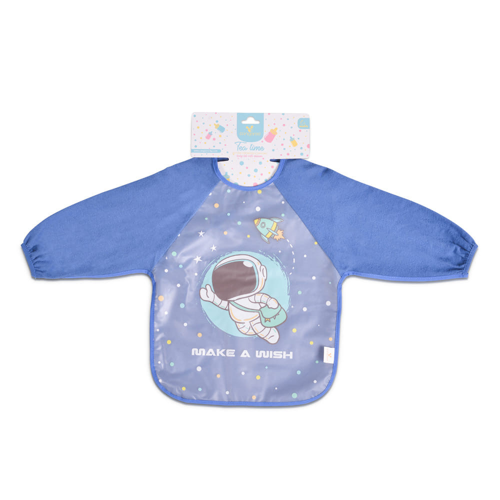 A „TeaTime” ujjas gyermek előke 6 hónaposnál idősebb gyermekek számára alkalmas. Praktikus kialakítású, ujjakkal, hogy a gyermek ruhája száraz és tiszta maradjon etetés és játék közben. Az előke 100% pamutszövetből és vízálló anyagból készült felső rétegből áll, amely nem tartja meg a foltokat. Könnyen tisztítható. A kellemes színeknek és a könnyű tisztíthatóságnak köszönhetően a gyermek etetése minden nap kedvenc időtöltéssé válik. A termék gyártásához használt festékek és nyersanyagok teljesen biztonságosak az emberi egészségre. 6 hónapos kortól ajánlott
