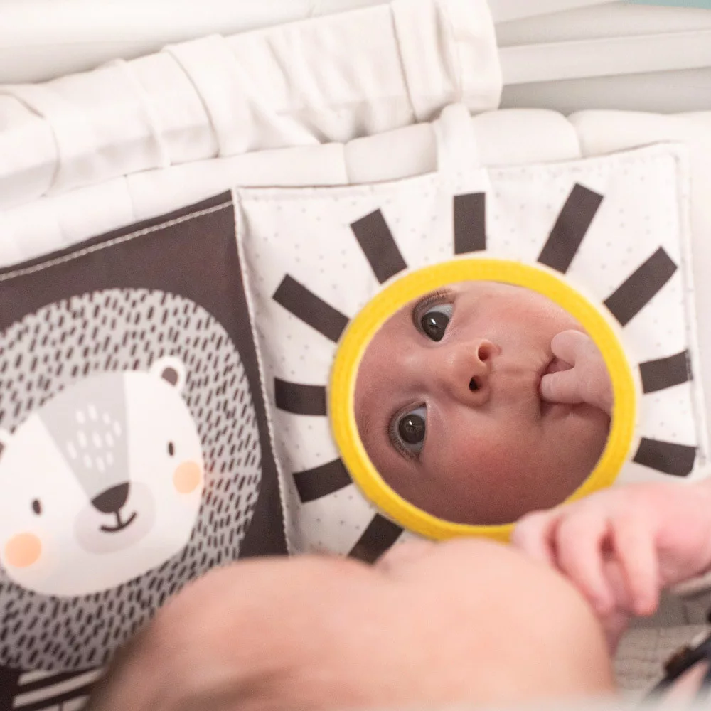 A Tay Toys puha könyve a Szavanna kollekcióból használható kiságyba fejvédõként, illetve rögzíthetõ babakocsiban is. Hajtogatható, megáll az élén, így játékhoz is kiváló, vagy csak pusztán lapozgatáshoz, nézegetéshez.Kétoldalú. Minden lapja új, érdekes és színes mintákat rejt. Csörgõ és tükör is található rajta. A könyv élére helyezésével, alakításával, vele való játékkal fejlõdik a gyermek térérzékelése, ok-okozati viszonyok megértésének képessége. A színes, figyelemfelkeltõ minták fejlesztik a vizuális észlelést. Mérete 15x85 cm. Újszülött kortól ajánlott.