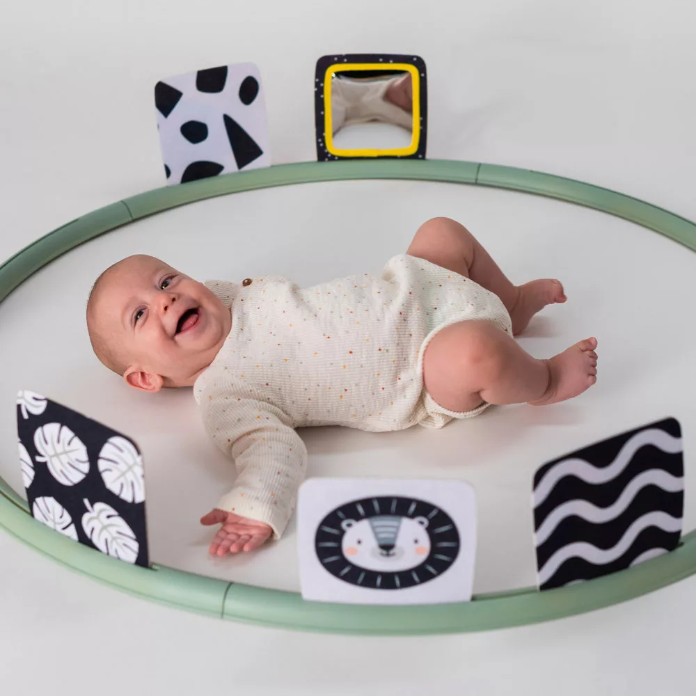 A legjobb szórakozás a hason játszó gyermek számára.Az egyes érzékszervek és motorikus képességek fejlesztése.Könnyen összeszerelhetõ és szétszedhetõ.- születéstõl – tevékenységek kontrasztos képekkel fekete-fehér kialakításban- 2 hónapos kortól – tarka susogó játékok erõteljes színes képekkel- 4 hónapos kortól – az egyes játékok különféle textúráinak felfedezése (susogás, fütyülés vagy zörgés)– a nyak és a hátizmok erõsítéseElõsegíti a baba motoros készségeit és látásfejlõdését, miközben meghosszabbítja a hason töltött idõt.Fejleszti a baba finommotorikus készségeit, és ösztönzi arra, hogy a pocakon fekve nyújtózkodjon ki és fogja meg a játékokat.A különbözõ játékokkal való foglalatosság fejleszti a baba érzékszerveit, finom- és nagymotoros készségeit, valamint a szem-kéz koordinációt.Méretek: Ø 90cm, Ø 35,5”.Újszülött kortól ajánlotthttps://youtu.be/1t14Bevo2Zc