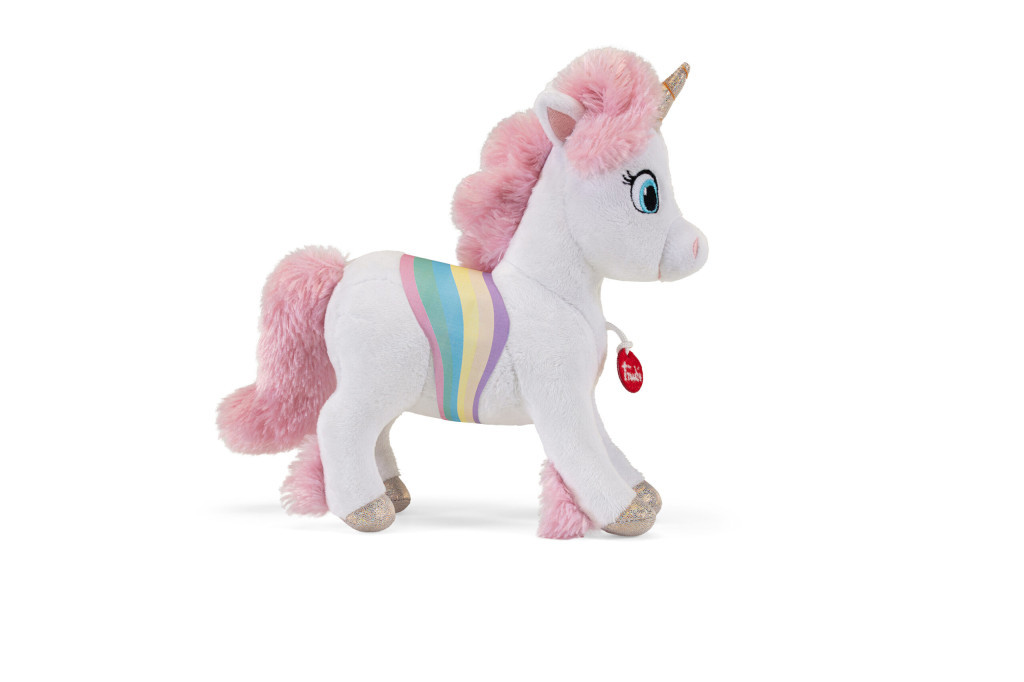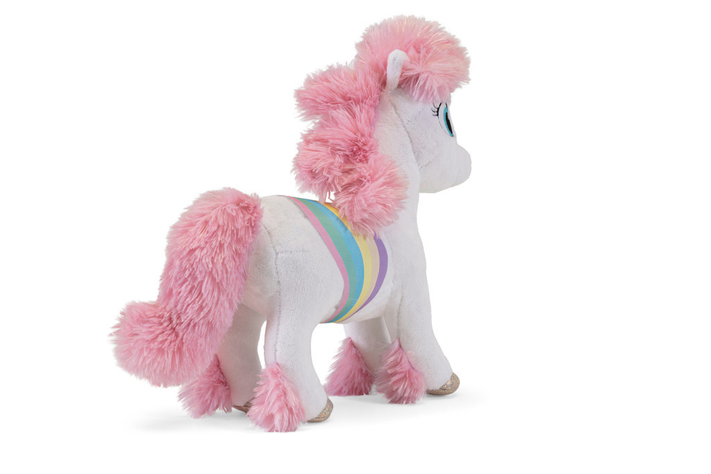 Puha, rózsaszín sörénye csábít a simogatásra, míg szemei ?édes részletei ellenállhatatlan gyengédséget kölcsönöznek. Csillogó csillámokkal díszített szarva varázslatosan csillog, szivárványszínű öve pedig extra eleganciát és egyediséget kölcsönöz.