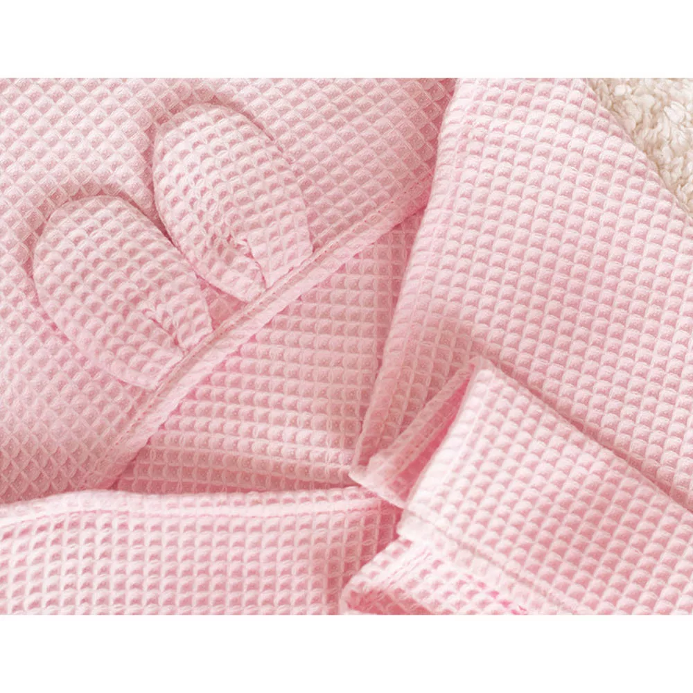 Puha, lágy tapintású és kiváló nedvszívó waffle fürdõlepedõFürdõlepedõnk extra dekorációja a kapucnin található nyuszifülek, melyekkel még vidámabb perceket okozhatunk gyermekünknek esti fürdés ideje alatt.A waffle magyar nevén a "darázsos" pamut anyag, 100% pamut összetételének és szövésének köszönhetõen nagyon jó nedvszívó képességgel rendelkezik.Mérete: 70 x 70 cmAnyaga: 100% pamut