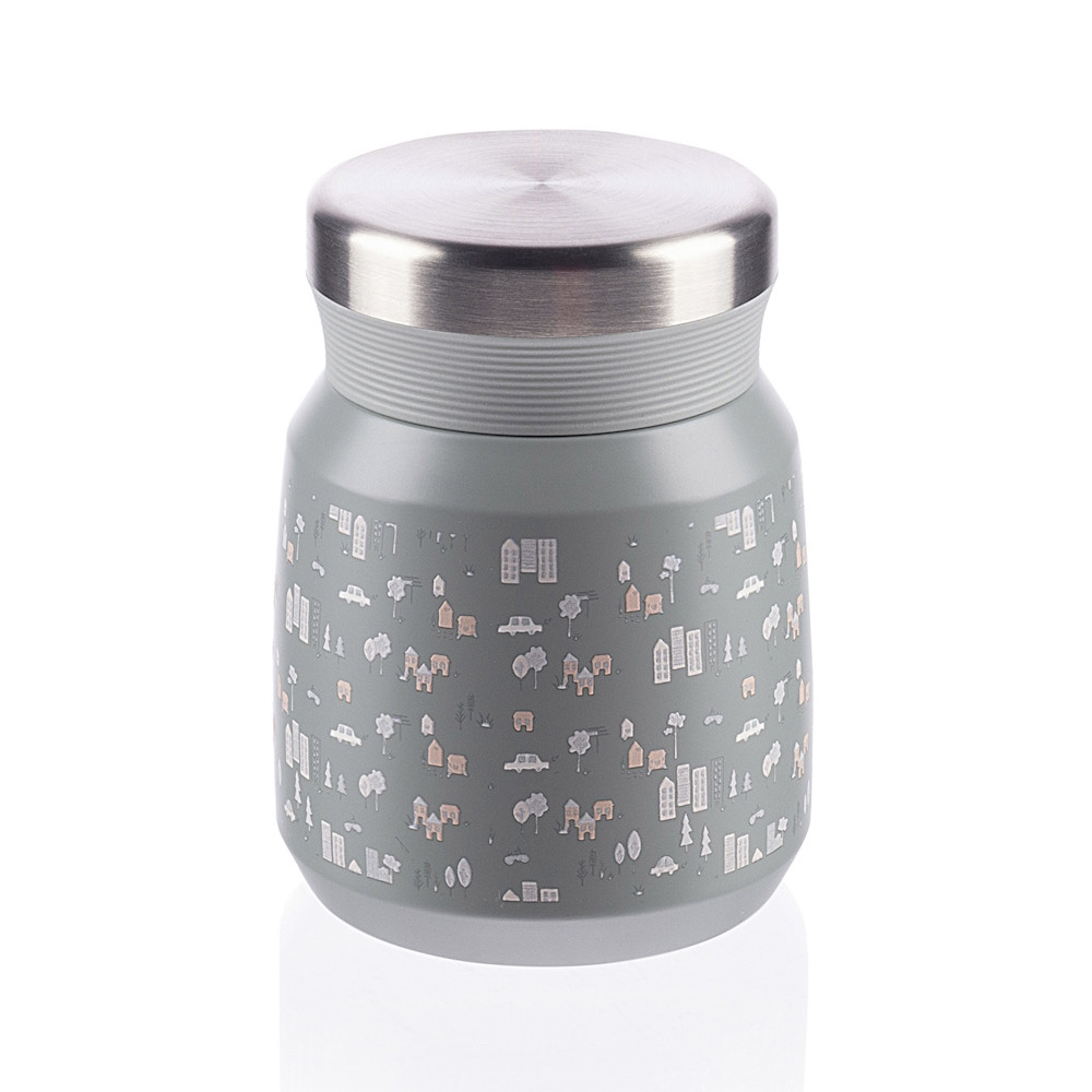 Meleg és hideg ételek tárolására alkalmas, minõségi rozsdamentes acél, korrózió- és páralecsapódásálló, szoros kupak, 300 ml-es ûrtartalom.A kiváló minõségû, 300 ml-es étel- és uzsonnás termosz akár 12 órán át megõrzi a meleg ételeket, a hideg ételeket pedig akár 24 órán át. Kiváló minõségû rozsdamentes acélból készült, amely korrózióálló. A szorosan záródó fedél biztosítja, hogy a termosz ne szivárogjon. A vákuumszigetelésnek köszönhetõen a termosz nem melegszik fel kívülrõl, ha forró tartalommal megtöltjük.Társ minden utazáshozA mûanyag dobozokhoz képest a rozsdamentes acél anyag nem szívja fel a szagokat és foltálló. Ráadásul szállítás közben sem szivárog ki a folyadék, ahogyan a mûanyag ebédlõdobozoknál, amik nem zárnak jól. A széles nyílás megkönnyíti a kiöntést, a megtöltését vagy mosását, de kényelmesen meg is etetheted belõle a babádat. A termosz hosszabb ideig frissen tartja a gyümölcsöt és zöldséget. A termosz kézzel mosható, mosogatógépben nem mosható.Tulajdonságok:- 300 ml ûrtartalom- Alkalmas hideg és meleg ételekhez- Nagy nyílás- Szorosan záródó fedél (csepegésmentes)- Kiváló minõségû rozsdamentes acél- Vákuumos szigetelés- Akár 12 órán keresztül melegen tartja a tartalmat- Akár 24 órán keresztül hidegen tartja a tartalmat- Hosszabb ideig frissen tartja a gyümölcsöket és zöldségeket– BPA mentes- ECO-friendly- 12 cm magas- súlya: 260g- átmérõje: 9 cm