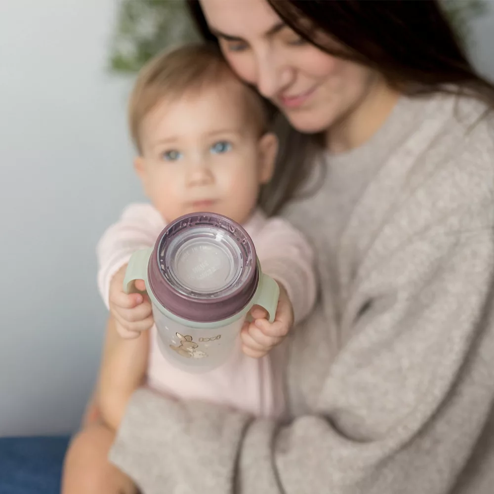 A LOVI 360° pohár segít a gyermekének megtanulni az ivás mozdulatait, miközben nem kell tartania a kiömlő folyadéktól.