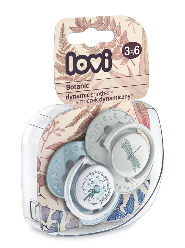 Lovi dinamikus nyugtató cumi, amely a szakértők által lett kifejlesztve a természetes szopóreflex védelmére. Szimmetrikus alakja van, amely hasonlít a mellbimbó alakjára. Egyedi dinamikus szerkezete heterogén szilikon rétegekből áll, amelynek köszönhetően természetes ritmusban alkalmazkodik a szíváshoz.