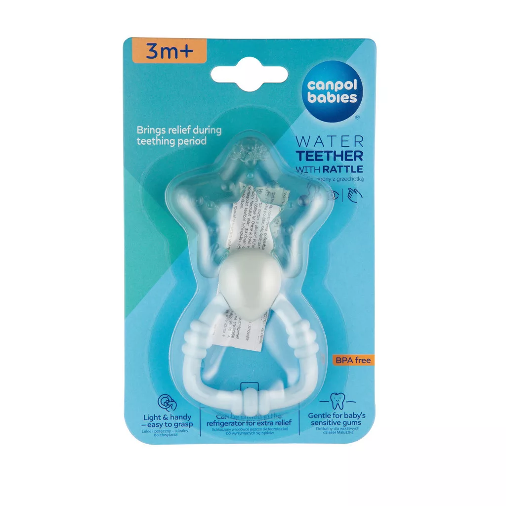 Több színben kapható. Mikrobiológiailag tesztelt desztillált vízzel töltött rágóka. Made & nbsp; BPA nélkül. A termék 0+ hónapos kortól ajánlott.