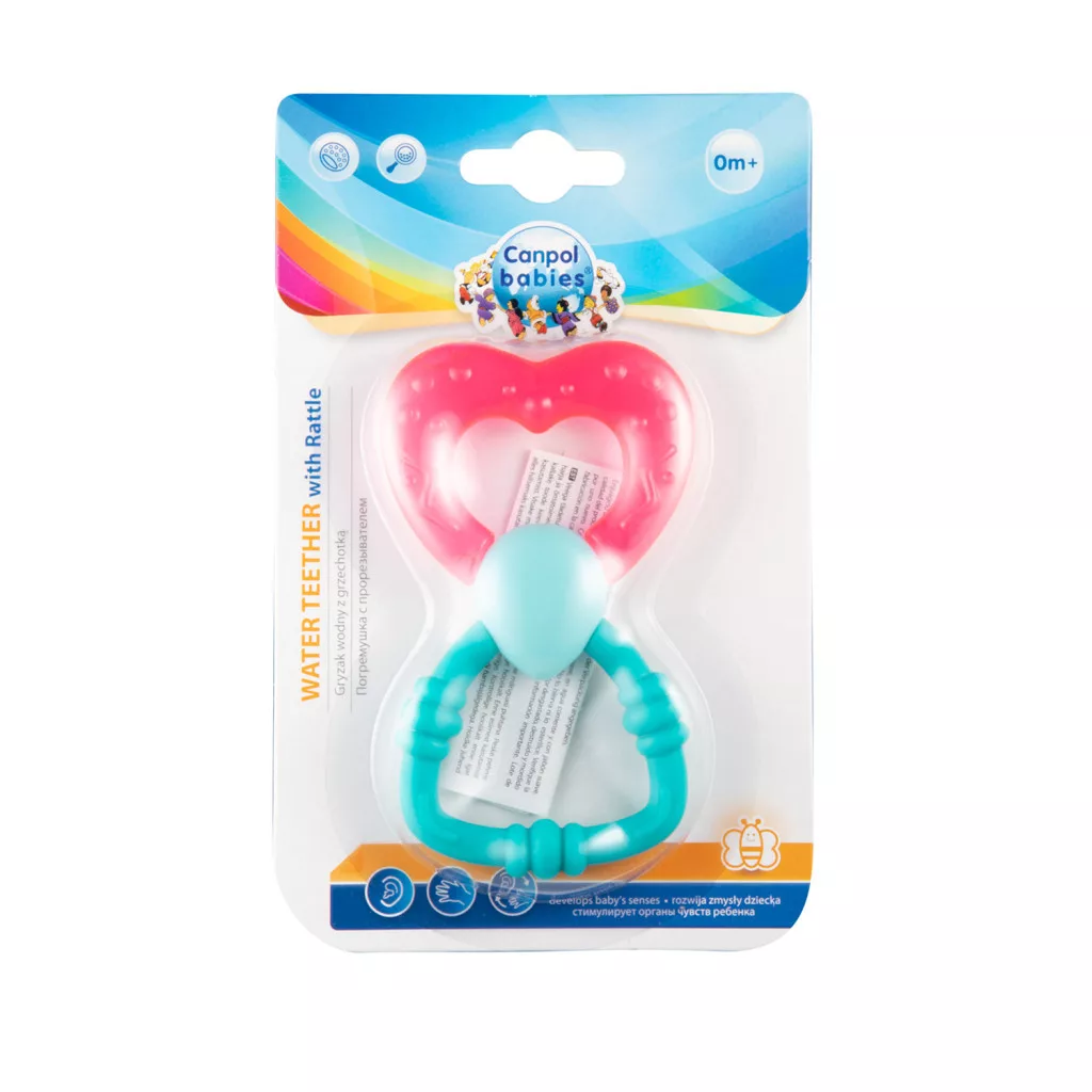 Több színben kapható. Mikrobiológiailag tesztelt desztillált vízzel töltött rágóka. Made & nbsp; BPA nélkül. A termék 0+ hónapos kortól ajánlott.