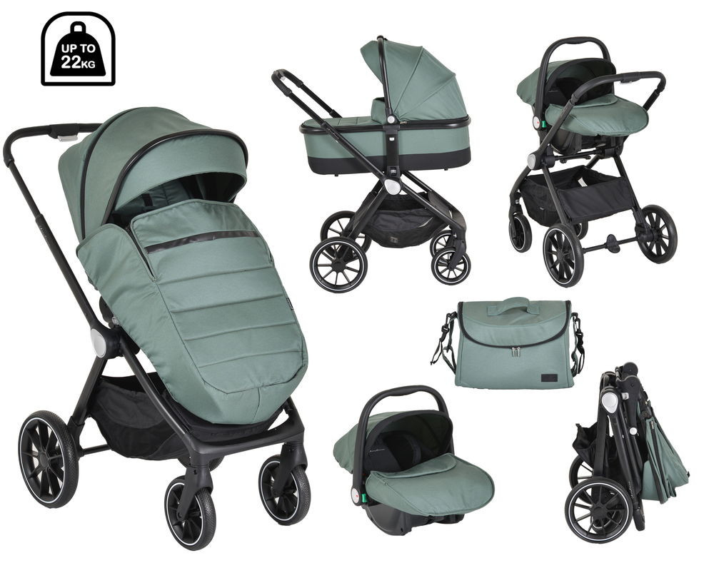 A Christiano 3 az 1-ben - CANGAROO a szépet szerető szülők számára készült, és újszülöttek és 22 kg-ig terjedő súlyú gyermekek számára alkalmas. A könnyű váz és a gazdag felszereltség kiegészíti az egyedi kialakítást.
