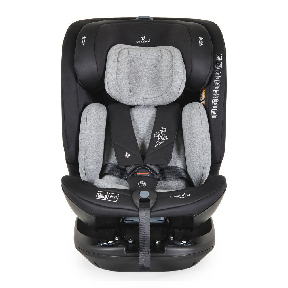 GRAVITY I-size autós ülés 40-150cm, SPS, forgatható talp, pamut huzat SZÜRKE