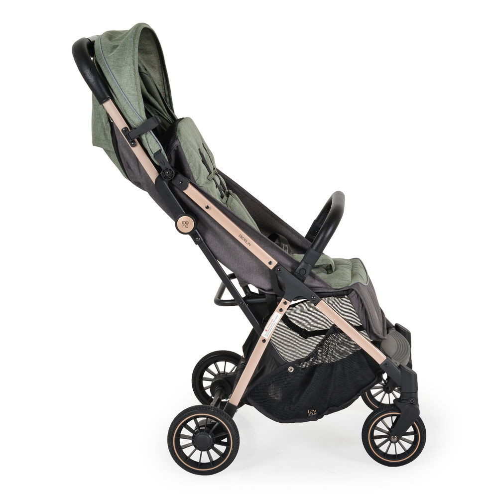Extrák: baldachin, puha párnázás, állítható lábtartó, speciálisan kialakított vállöv párnázása csúszásmentes anyagból-Lábtartó-beállítható háttámla-5 pontos biztonsági heveder-hátsó lengéscsillapítók