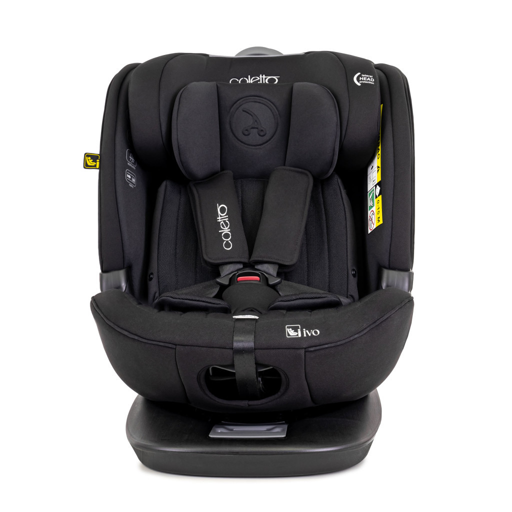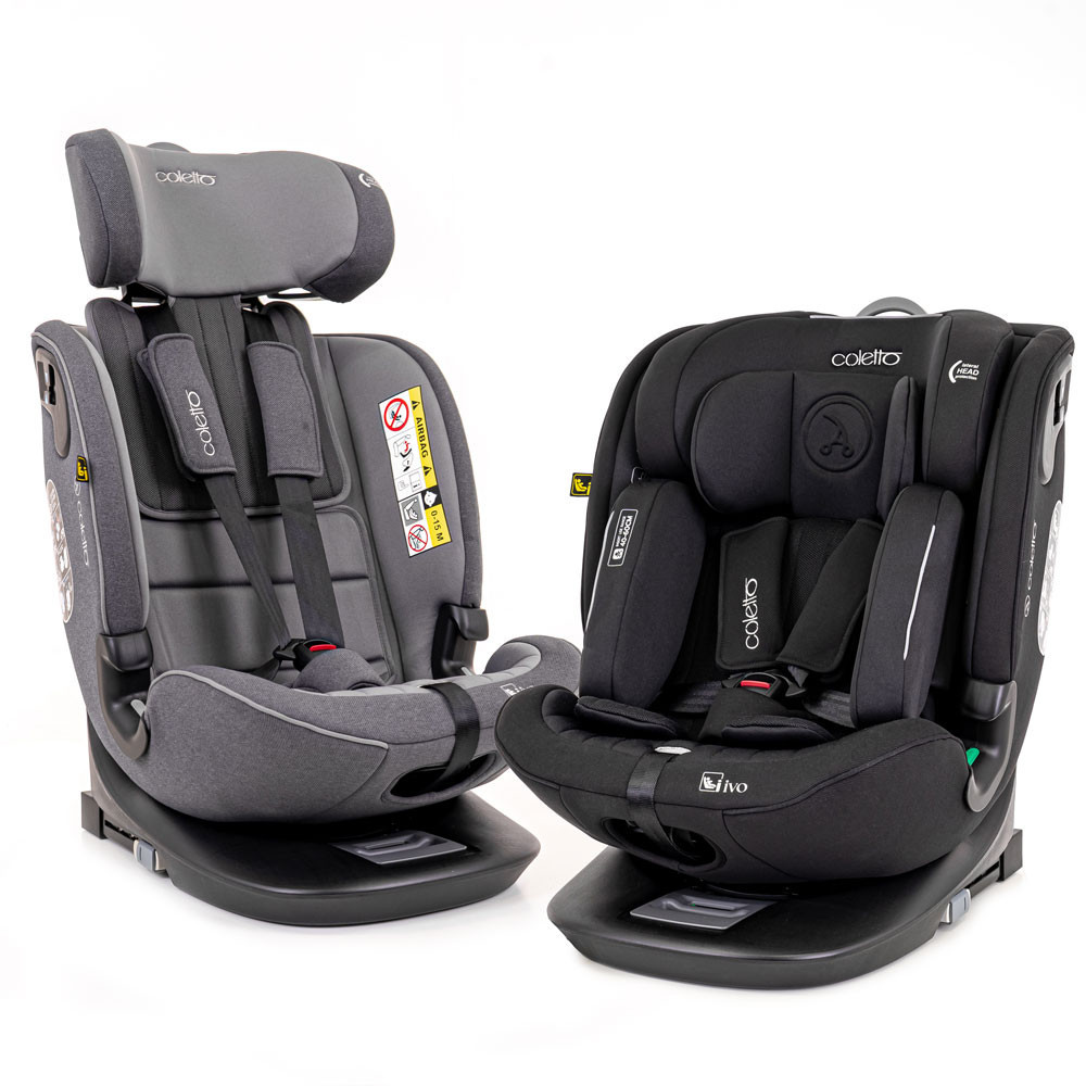 A Coletto Ivo i-Size biztonsági gyerekülés 40–150 cm között használható, így újszülött kortól egészen 12 éves korig elkíséri gyermekedet. 360°-ban forgatható, ISOFIX és Top Tether rendszerrel szerelt, ergonomikus újszülött betéttel és szellőző vázzal – a kényelem és biztonság tökéletes kombinációja.
