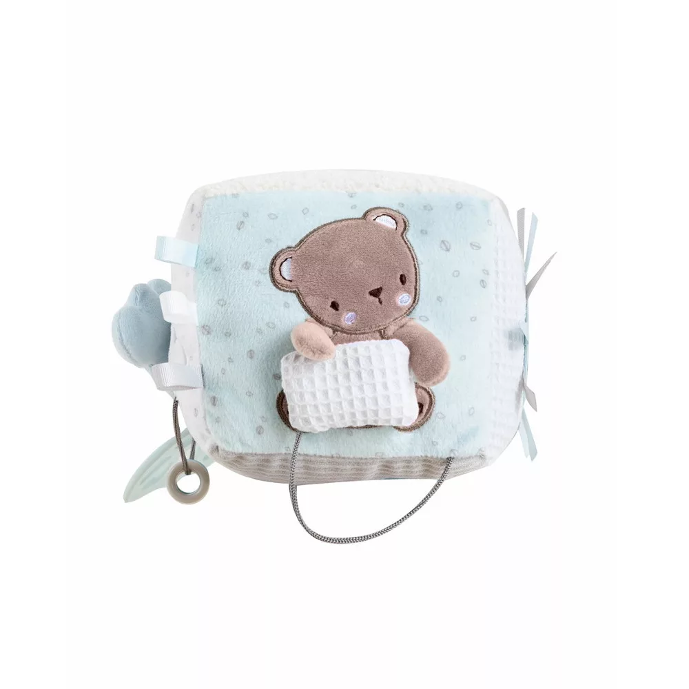 Kikkaboo készségfejlesztõ játékkocka Bear With Me• Színes plüss kocka különféle tevékenységekhez• Különbözõ szerkezetekkel, hurkokkal, kötelekkel, tükörrel és bolyhos felületekkel serkenti a baba érzékszerveit és kíváncsiságát;• Játékos medvearc 3D ráncos papírfülekkel;• Függesztett rágóka dombornyomott részletekkel;• Biztonságos, kiváló minõségû anyagokból készült;• EN 71 szabvány szerint jóváhagyva;• újszülött kortól ajánlott;• 100% poliészter;• Mérete: 16x16x16 cm. Méretek:- Termék: 16x16x16 cm / 0,1 kg