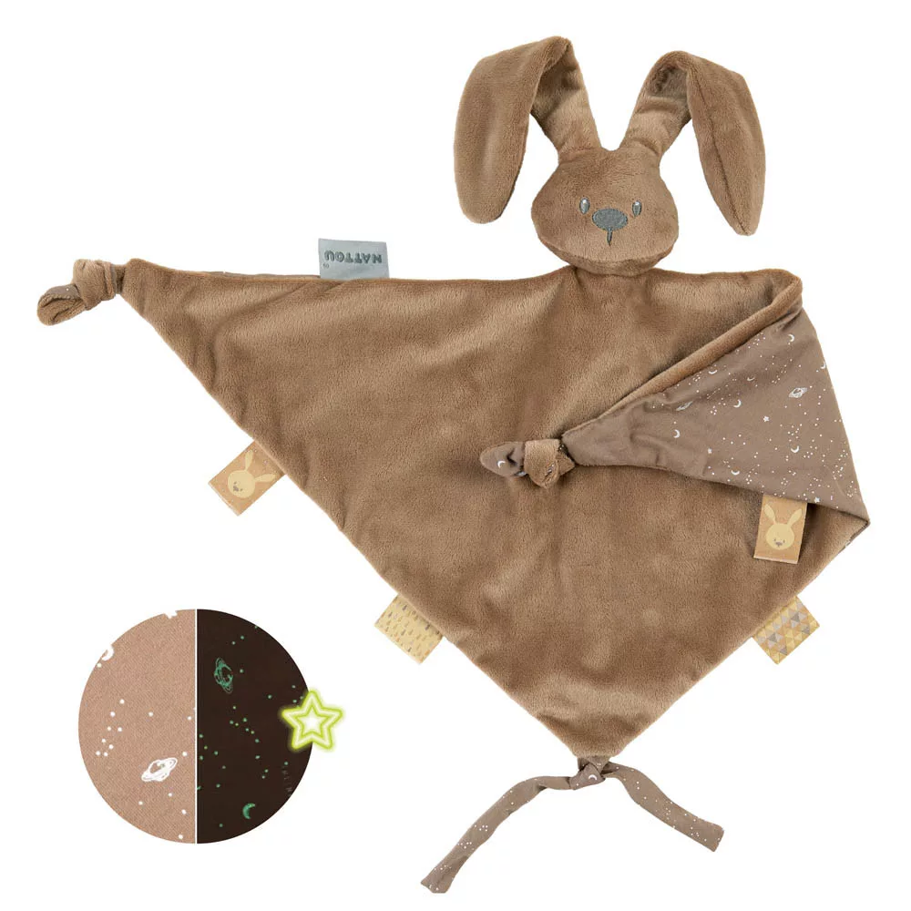 A szundikendõ a baba elsõ barátja és születésétõl kezdve nélkülözhetetlen társa. Különösen alkalmas újszülöttek és koraszülöttek számára. Számos megfogási lehetõségük van a kis kezek számára.Ez a nyuszkó VILÁGÍT A SÖTÉTBEN, így könnyebb megtalálni és biztonságérzetet nyújt!- puha és rugalmas szundikendõ- játszótárs és megnyugtató bújós barát nehéz idõkben- újszülöttek és koraszülöttek számára is alkalmas- ideális a durva és finom motoros készségek fejlesztésére, a megfogási lehetõségeknek köszönhetõen- világít a sötétbenÚjszülött kortól használható.Mérete: kb. 65 x 4cmAnyaga: 100% poliészter, pamut jerseyKönnyen kezelhetõ: 30°C-on mosógépben moshatóTipp: Vegyél kettõt egyszerre – így váltogathatod, amikor az egyik a mosógépben van, és elkerülheted a könnyeket, hogy a babád játszótárs nélkül maradjon.