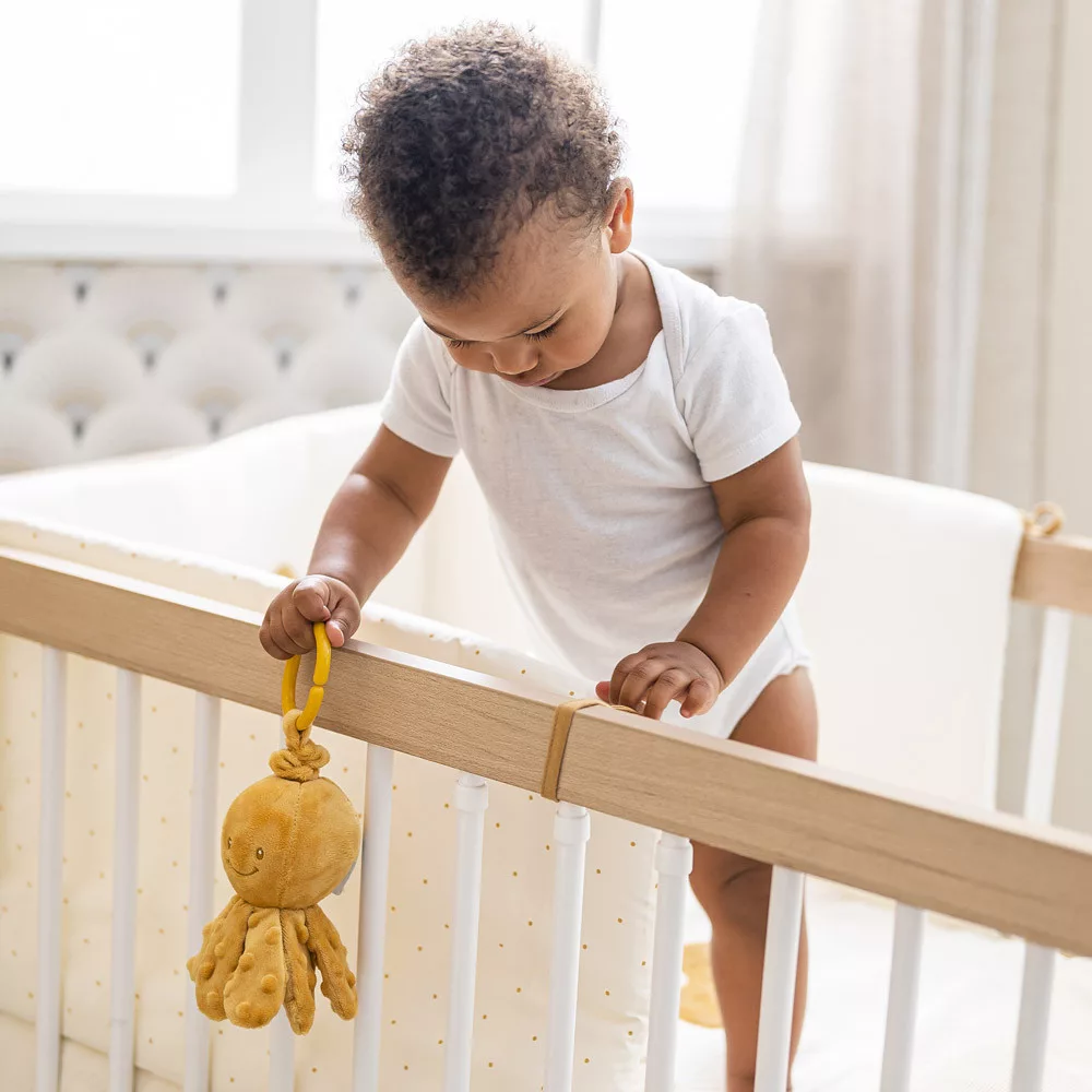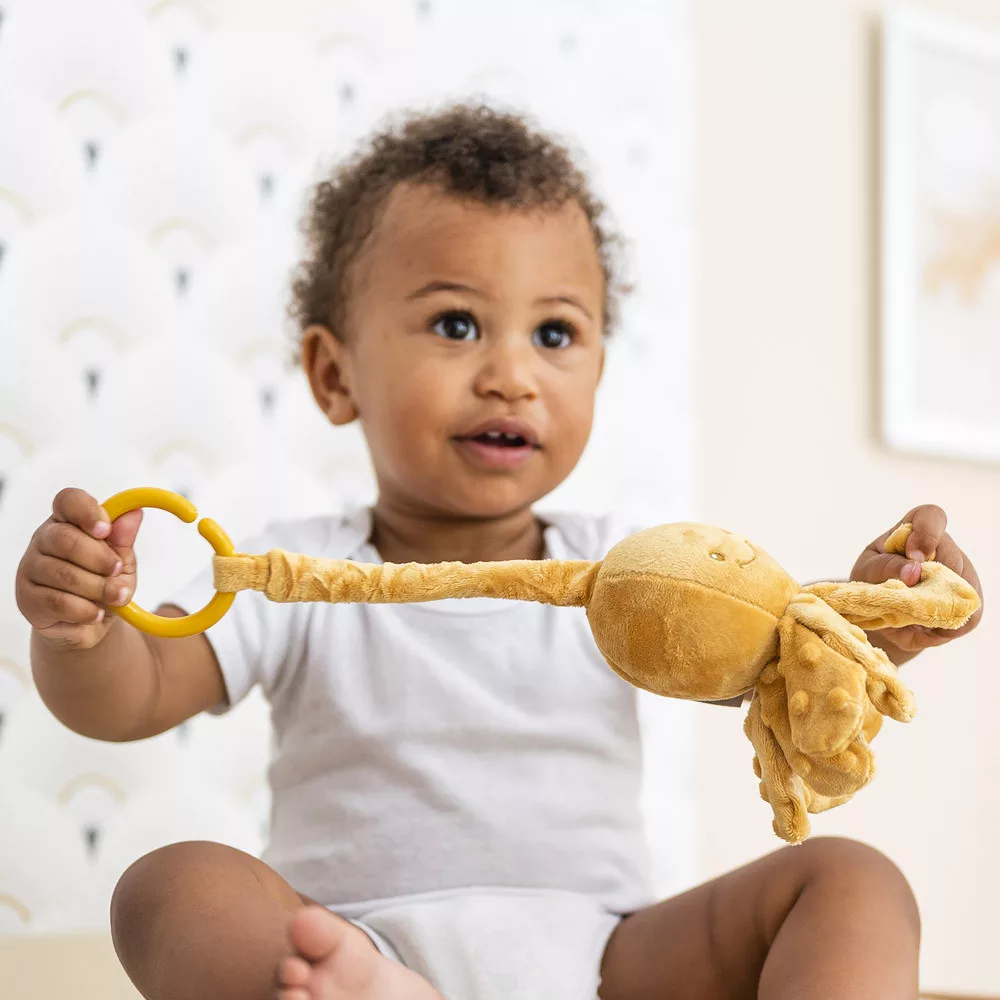 Nagyon cuki kis polip, ami felhúzva vibrálva megy felfelé. Gyorsan az újszülöttek és csecsemõk legjobb játszótársa lesz. Játékos és fejlesztõ játék egyaránt, serkenti a baba motoros készségeit és veleszületett prehenziós reflexeit. A csápok mind puhák, pont akkorák, mint a babák kicsi kezei, enyhe dudorokkal, amelyek felkeltik a kíváncsiságát és a tapintását. Koraszülötteknek is alkalmas, ideális a baba stimulálására.- szórakoztató vibrációs funkció- mérete: kb. 21cm- anyagösszetétel: 100% poliészter- Ápolás: Kézzel mosható