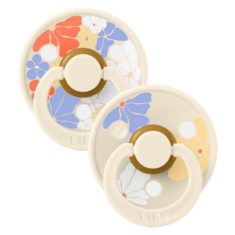 BIBS játszócumi - Studio Virágzás Colour natúr kaucsuk 0-6 hó krémfehér mix 2 db