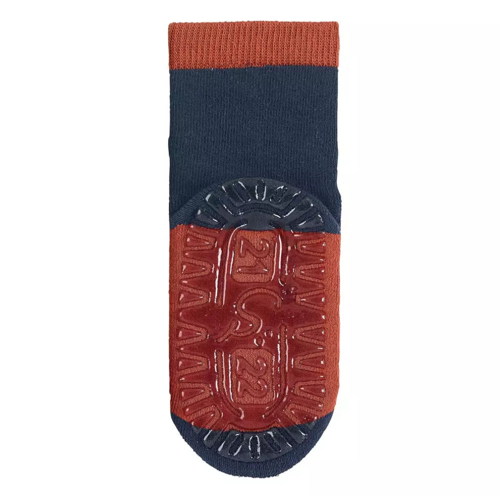 Középvastag, átmeneti pamutzokni szilikon talppal a merész és határozott lépésekért. A zokninak a külső talpbetétjén rések találhatók, melyek lehetővé teszik a levegő szabad áramlását. Csúszós felületekre tapad és megóvja a gyermeket a megcsúszástól. A zokni tetején lévő rugalmas szalag kényelmesen illeszkedik a gyermek lábára és a zokni nem ereszkedik meg. A zokni a papucs alternatívája lehet, ha a gyerek nem szereti viselni. Kényelmes magukkal vinni .
