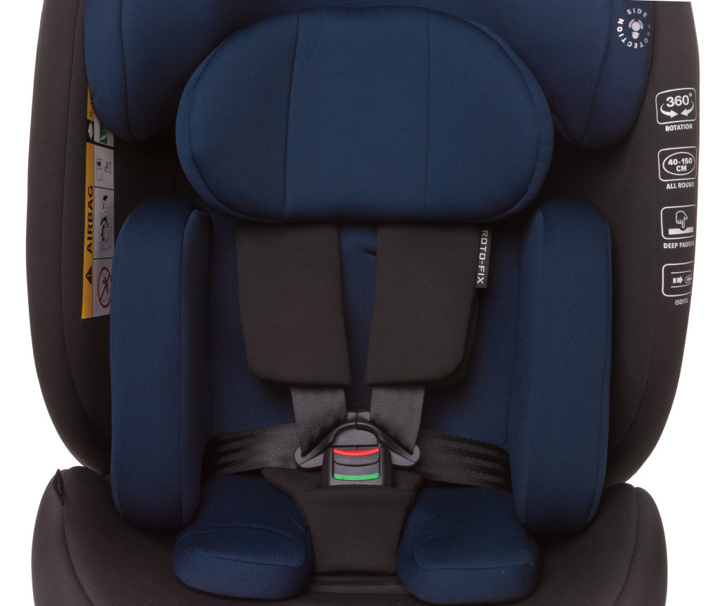 A Roto-Fix i-Size megfelel az R129 / i-Size előírásoknak, amelyek a legmagasabb biztonsági normákat képviselik Európában. Az ISOFIX és Top Tether rögzítés, a masszív váz és az energiaelnyelő szerkezet együtt garantálják a gyermek maximális biztonságát minden helyzetben.