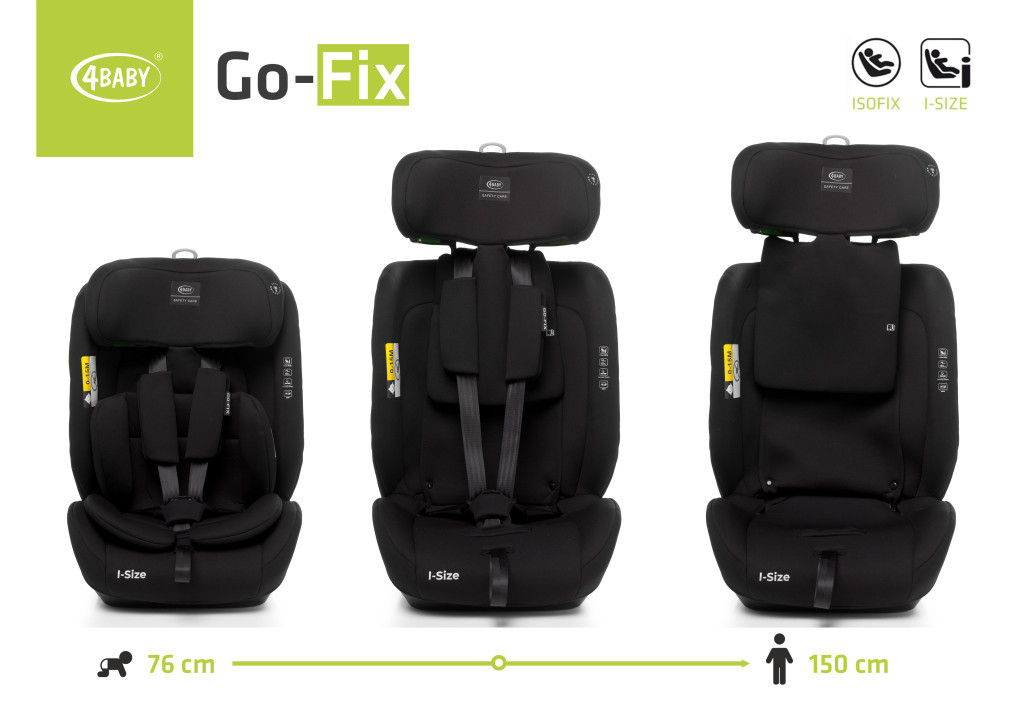 4Baby Go-fix i-Size 76-150cm biztonsági gyerekülés-Black