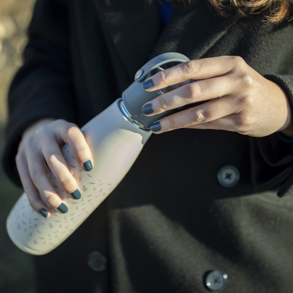 A folyadékokhoz való termosz használatával segítesz csökkenteni a mûanyagfogyasztást. A termosz kézzel mosható, mosogatógépben nem mosható.