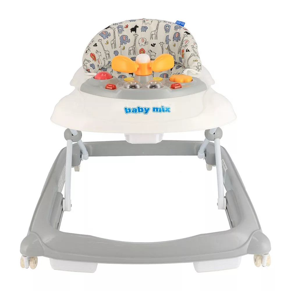 Multimédiás bébikomp Baby Mix szilikon kerekekkel. A bébikomp kényelmes, ergonomikus alakú üléssel van felszerelve, amely biztosítja a gerinc helyes tartását. A játék pult különféle fényekkel, forgatható dudáló kormánykerékkel és dallamok lejátszására szolgáló gombokkal rendelkezik. A gyönyörû játékokkal ellátott bébikomp sok szórakozást nyújt a gyermekek számára. A terméket az EN-1273: 2020 európai biztonsági szabványoknak megfelelõen tesztelték és engedélyezték.JELLEMZÕK:- 6 hónapos gyermekek számára készült- játék pult hang- és fényhatásokkal, 12 dallam, duda és forgatható kormánykerék (2x1,5 V AA elemmel mûködik - nem tartozék)- 3 szintes magasságállítás a gyermek magasságának megfelelõen- A huzat mosható- 2 szilikon 360 ° -on forgatható elsõ kerék, amelyek nem károsítják a padlót- 2 rögzített gumi hátsó kerék a nagyobb biztonság érdekében- Speciális billenésgátló rendszer- Interaktív játék pult, hangokkal és lámpákkal (2x1,5 V AA elemmel mûködik - nem tartozék)MÉRETEK:- A kialakítás lehetõvé teszi a magasság 40 és 44 cm közötti állítását- Magasság: 40-44 cm- Szélesség: 50 cm- Mélység: 50 cm- Maximális terhelés 12 kg-ig- Súly: 3,9 kgCSOMAGOLÁS: 62x64x12,5 cmSúly csomagolással: 4,1 kg