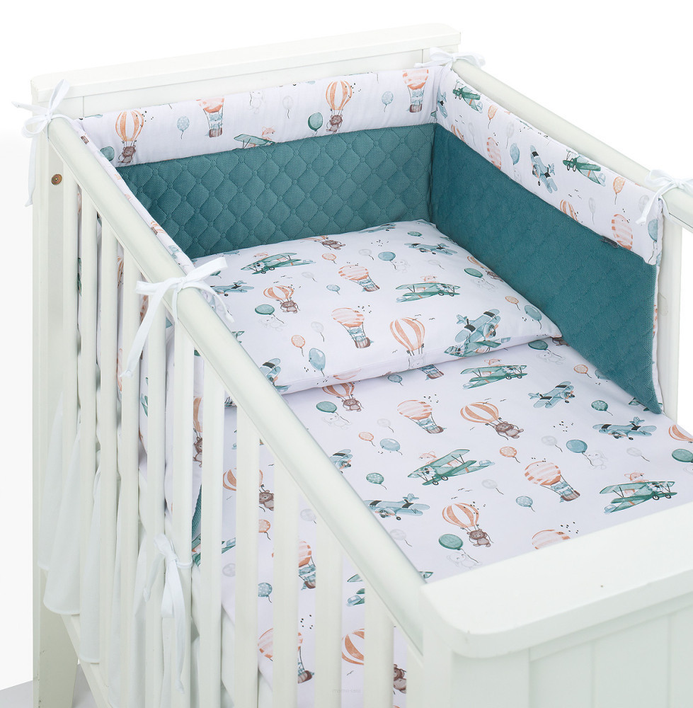 MTT Velvet 3 részes ágyneműhuzat szett (100x135cm) - Repülők és léggömbök - Zöld betéttel